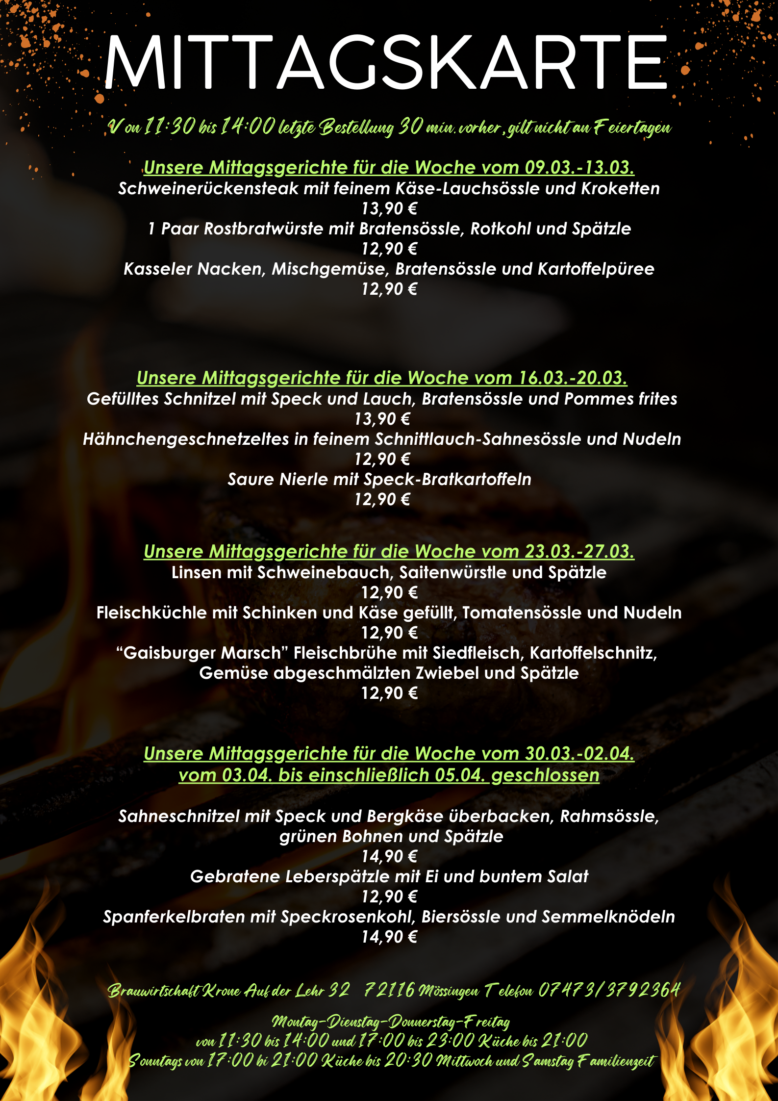 05:00 PM – 11:00 PM Kitchen 05:00 PM – 09:00 PM |